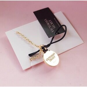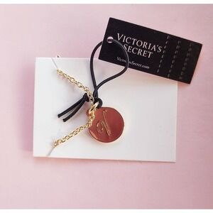 A charming Victoria's Secret pendant. This stylish necklace features a delicate gold tone mini chain and a round pendant charm engraved with the Victoria's Secret logo on one side and a distinctive 'V' on the other. This piece adds a touch of elegance to everyday wear or complements a sophisticated evening outfit. Suitable for adding a subtle brand touch to casual outfits, and perfect for anyone who loves minimalistic accessories.