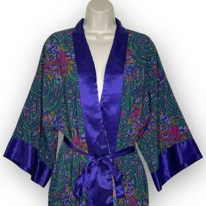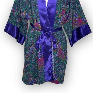 Victoria’s Secret Gold Label Purple Green Paisley Print Robe One Size Vintage