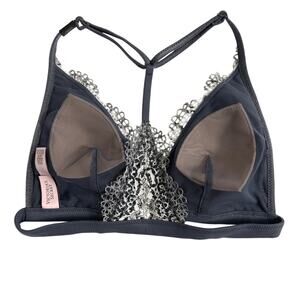 Victoria's Secret Gray Black and White Lace Racerback Bralette Size XS