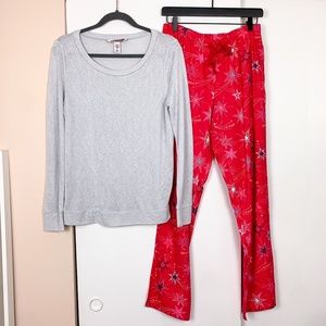 Victoria's Secret Gray Crew Neck & Red Star Print Pant Pajama Set