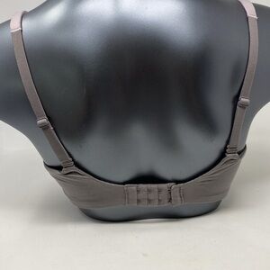 Elegant gray bra with delicate lace trim. Features a small pink bow accent. Comfortable and stylish design.