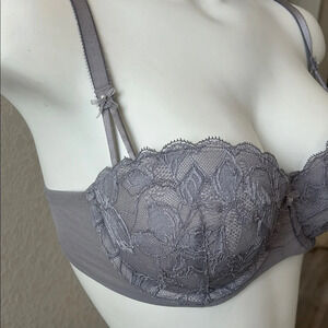 Victoria's Secret Gray Lace Underwire Bra with Scalloped Edges