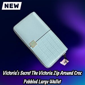 This is a Victoria’s Secret Gray Pebbled V Quilt Zip Wallet.