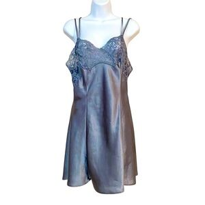 Victoria’s Secret Gray Sleepwear Nightie Slip Dress Large Spaghetti Straps Lace