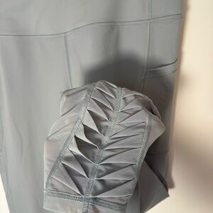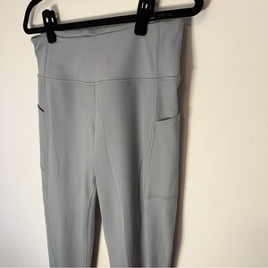 Stylish gray sport leggings with side pockets and ribbed ankle details. Perfect for workouts or casual wear.