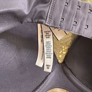 Good used condition, no major flaws, a couple small blemishes on the front like marks on the front of the bra but nothing very bad or major at all. This is actually a very nice bra that feels amazing and comfortable. Deep gray color, smooth cups. Size 38DD.