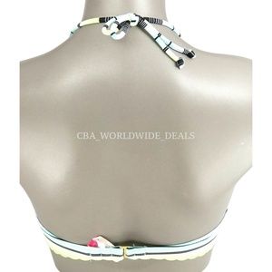 Victoria's Secret Green & Black Stripes Getaway Halter Swim Top 34B