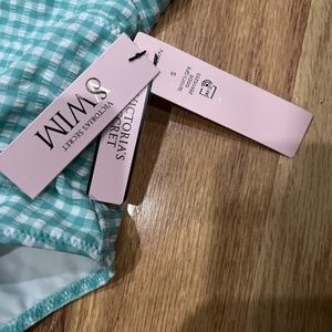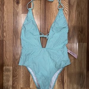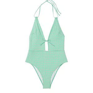 Victoria's Secret plunge one-piece swimsuit with green gingham pattern, cute, retro style
