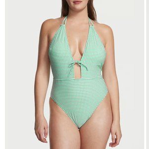 Victoria's Secret Green Gingham Plunge One-Piece Swimsuit