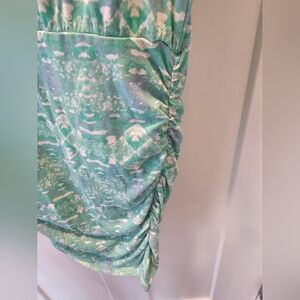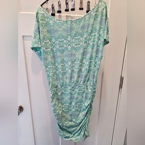 Victoria's Secret dress casual knit dress green abstract print cotton modal dress ruched side dress beach cover-up VS loungewear Victoria’s Secret XS summer casual style soft knit dress