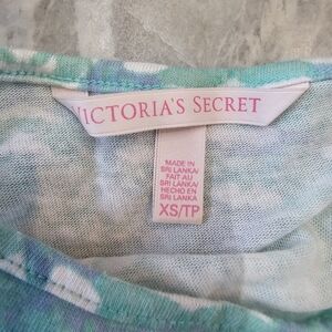 Comfy meets cute in this Victoria’s Secret knit dress featuring a relaxed silhouette with side ruching and an abstract green and aqua print. Crafted from a soft and breathable cotton-modal blend, this dress is perfect for lounging, layering, or wearing as a cover-up. Size XS. Approx. measurements: 18" pit to pit, 32" length.