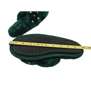 Victoria's Secret Green Slippers Womens Small Faux Fur Slides Pearl Accents Soft