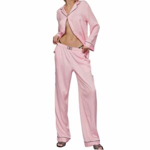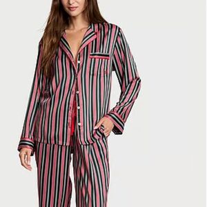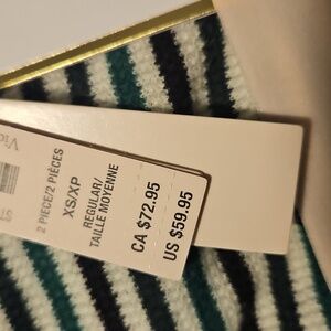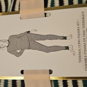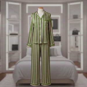 Chic striped thermal set with green and white pattern. Perfect for lounging.