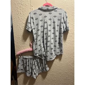 Victoria’s Secret grey button up sleep shirt and shorts set. Woman’s size small.