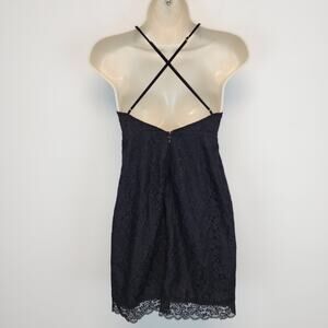 Victorias Secret Grommet Lace Slip Mini Dress Size XS Black Lined Sexy Coquette