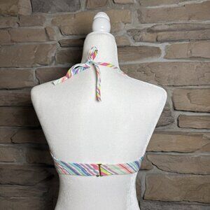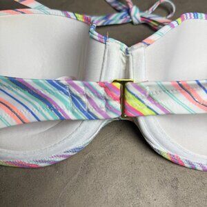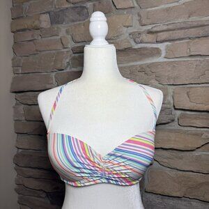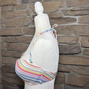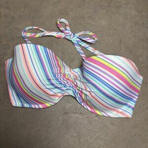 Victoria’s Secret, bikini top, halter, swim top, swimsuit, bathing suit, 34DD, padded, underwire, multicolor, stripe, beachwear, swimwear, summer