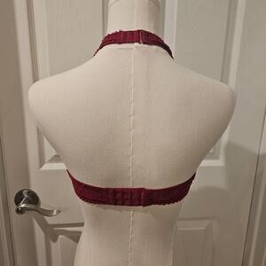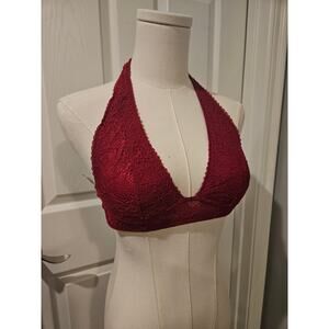 Victoria’s Secret Halter Bralette Small Cherry Red Lace Tie Back Unlined Adjust