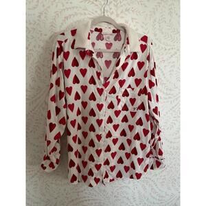 Sleep in style with this adorable Victoria's Secret button-up shirt featuring a charming heart print design. Ideal for cozy nights in, it captures a playful yet chic aesthetic. Key features include: - Soft fabric blend for comfort - Unique red heart print on a light background - Soft collar for added style - Convenient single chest pocket - Long sleeves with adjustable cuffs. Whether you’re dressing up or lounging at home, this versatile shirt is sure to become a staple in your wardrobe. Worn only 3-4 times, not my style. Still in great condition!