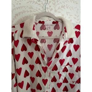 Victoria's Secret Heart Print Button-Up Sherpa Lined PJ Set