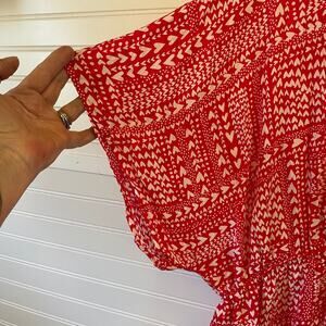 EUC is a lightweight tie front robe/kimono by Victoria’s Secret in a red and white heart print.