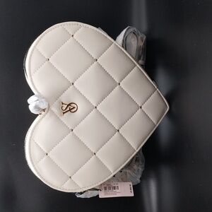 NWT. Chic and stylish heart-shaped quilted bag in cream. Perfect for adding a touch of elegance to any outfit.