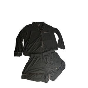 Victoria’s Secret Heavenly Black Pajama Set Leopard Trim Button Top Shorts Women’s S