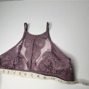 Victoria's Secret High Neck Bralette Size Small Purple Lace Sheer Clasp Back