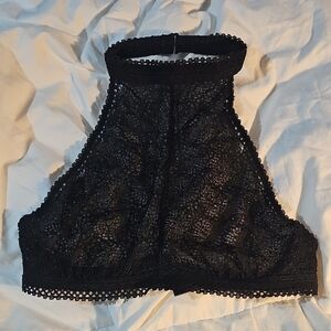 Victoria's Secret High Neck Halter Bralette Med Black Mesh Lace