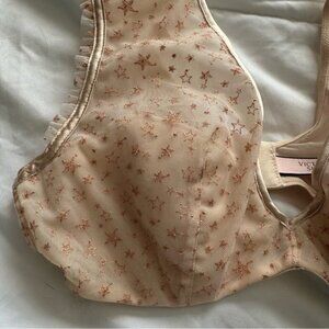 Victoria’s Secret High Neck Nude Embroidered Star Mesh Bra – Size Medium
