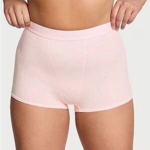 Soft and comfy Victoria’s Secret high-waist boyshort underwear in a lovely light pink marbled pattern. Made from a breathable and stretchy blend of 57% cotton, 38% modal, and 5% elastane. Perfect for lounging or everyday wear.