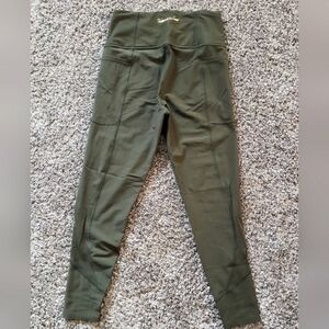 Stylish olive green leggings. High-waisted design. Perfect for workouts or casual wear.