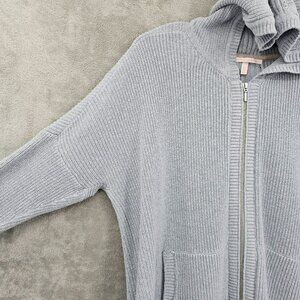 Victorias Secret Hoodie L Blue Gray Zip Up Drop Shoulder Split Hem Pockets Soft