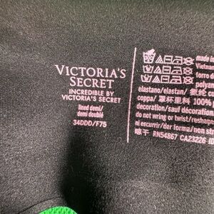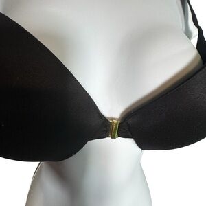 Victoria’s Secret Incredible Bra 34DDD Black Front Closure Lined Demi Gold Accen