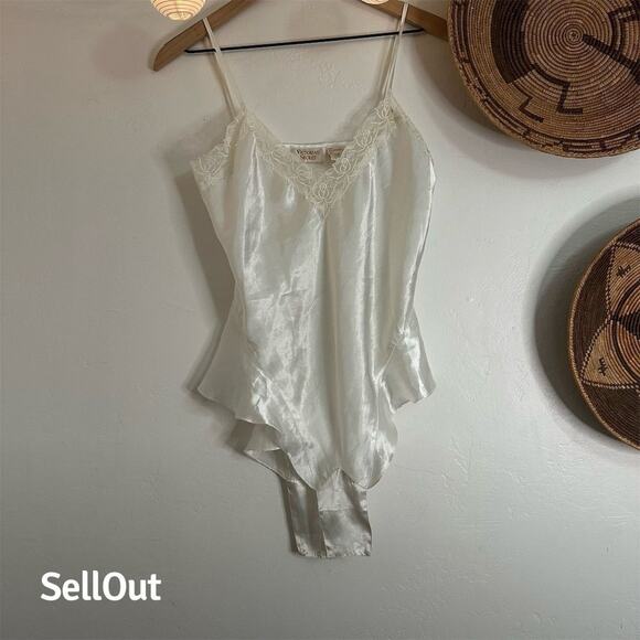 Victoria's Secret Ivory Lace Satin Teddy Bodysuit Size M Vintage