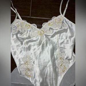 Victoria’s Secret Ivory Satin Bodysuit Teddy Chiffon Bridal sequins sz medium