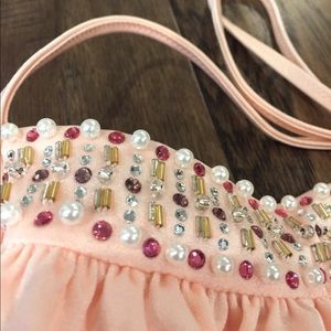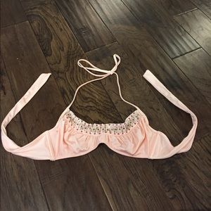 Girly light pink jeweled swim top with pearls. Victoria's Secret brand bikini top. Like new. Wire top, no padding. Size XS but would easily fit a size small.
