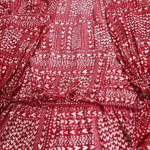 Victoria’s Secret beach cover-up or shrug. Beautiful heart, motif printed red and white shrug. One size. Drawstring at waist with tie. 100% Viscose. In excellent pre-loved condition. Measurements are in photos, but this could be worn open or loosely tied to accommodate many sizes. I picked size large but it is a one size fits all piece. Would look dynamite styled with a pair of jeans and top too!