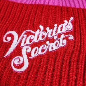 Super cute vibrant red and hot pink beanie with embroidered Victoria's Secret logo on front. One size and a fun look to your winter wardrobe