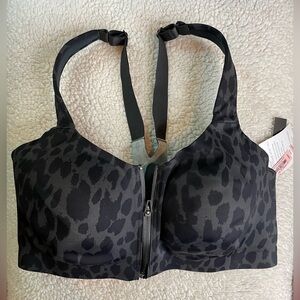 Victoria's Secret Knockout Front Zip Sports Bra NWT 38 DDD Carbon Leopard Print