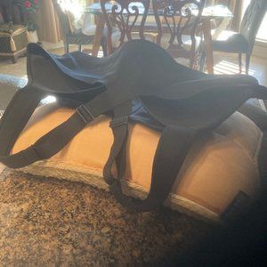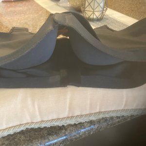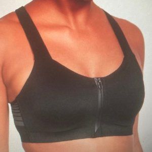 This sports bra has a 4-way stretch, quick-dry material and patented bounce control technology. Has semi auto-lock zipper that keeps you secure, has strong, yet breathable spacer fabric. Hidden, lightly padded underwire cups with front closure. Has adjustable, cushioned straps for stabilized support. Smooth bonded no-seam racerback for support. Machine wash. Imported. NEW with tags on.