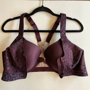 Knockout by Victoria's Secret Front-Close Sports Bra, Purple / Leopard Print, Size 38DD
