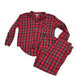 Victoria's Secret L Red Green Dream Plaid Flannel Cotton Modal 2 PC Pajama Set Good preowned condition Questions please ask before purchase Measurements are laying flat Measurements are approximate