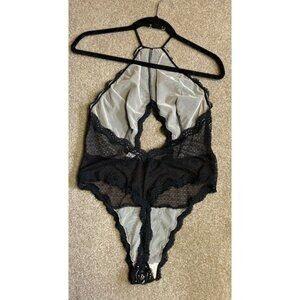 Victoria’s Secret Lace Black Thong Teddy. Size XL Halter Neck