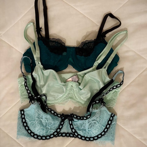 Green and blue lace bra bundle. The dark green and mint green I never wore, and for the other one I only wore it a few times. All in really good condition, only hand washed and air dried them. I bought all at full price online.