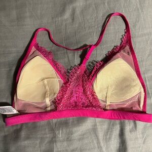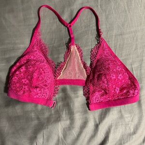 Experience comfort and style with this vibrant pink lace bralette. Perfect for everyday wear, it offers a delicate design with a supportive fit. Front clasp. Lightly padded. Excellent gently used condition. Non smoking home.