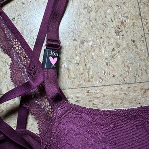 Victorias Secret Lace Burgundy Very Sexy Front Close Push Up Bra Sz 36D