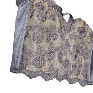Victorias Secret Lace Bustier 34C Greyish Lavender Floral Embroidery Lingerie