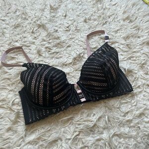 Victoria's Secret Lace Lightly Lined Plunge Black & pink Bra LUXE LINGERIE 32DD