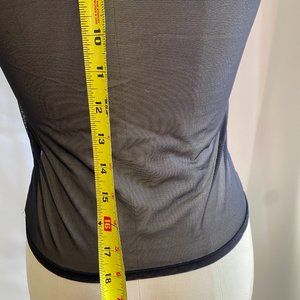 This is beautiful. Lace lined deep v-neck on black sheer t-shirt style top. Super flattering.
