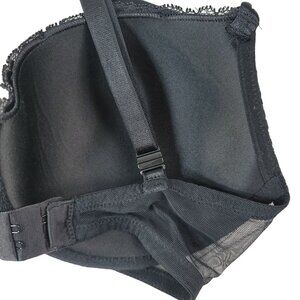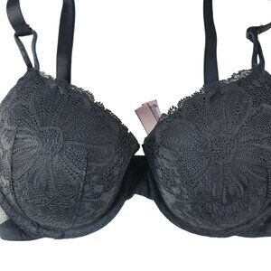 Victoria's Secret Lace Overlay Lined Demi Bra Black 32DD Adj Trim Mesh Underwire